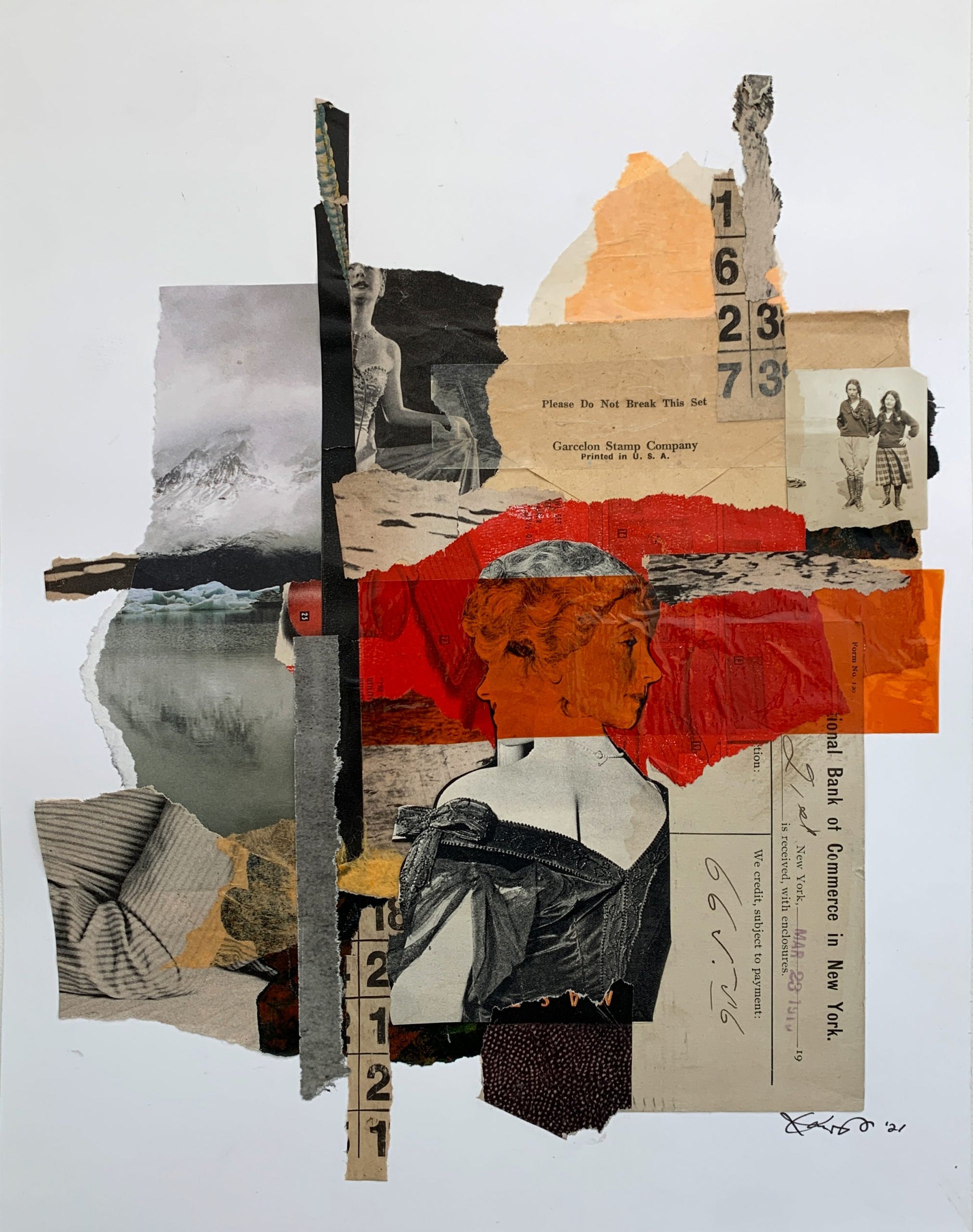 This one is extra personal to me. There is a small photo of two girls rescued from my grandfather’s high school photo album. Additional bits of ephemera come from collections that have been in the family for generations.